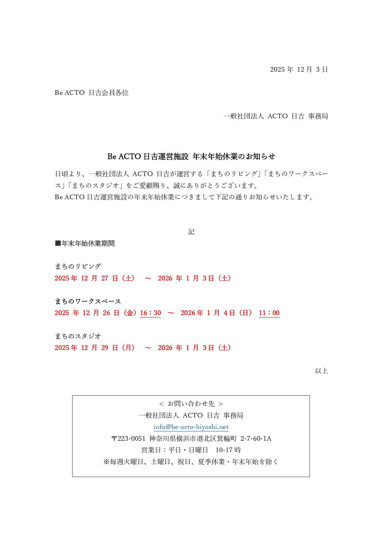 ©General Incorporated Association ACTO HIYOSHI All Rights Reserved.