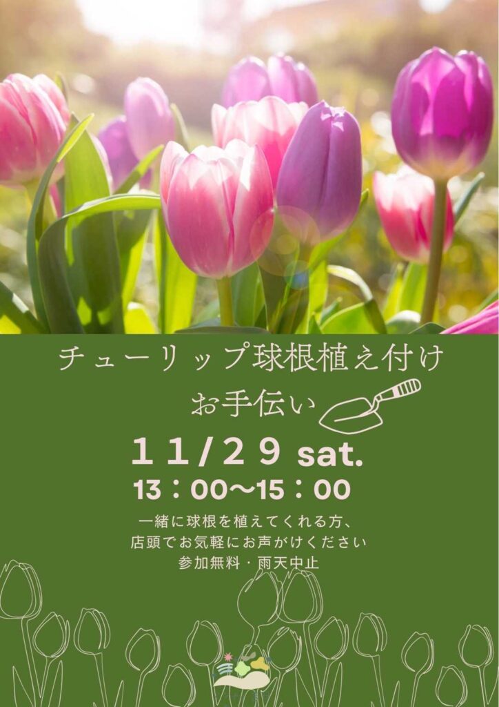 春に向けて、チューリップの球根の植え付けを行います!どなたでもご参加いただけます。
